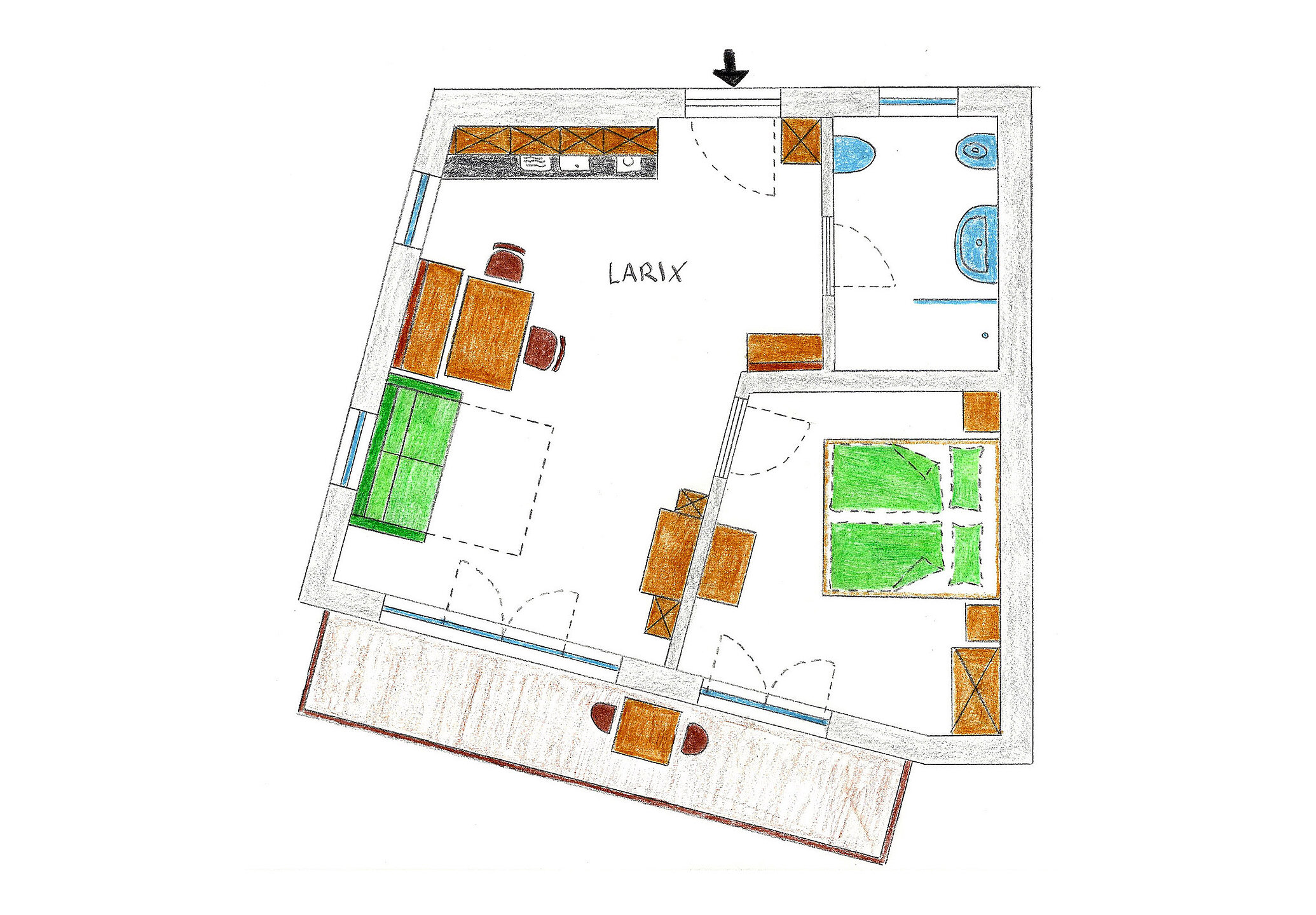 Sie benötigen mehr Platz? ⇒ Kombi-Apartment "LarixPLUS" (75 m2). Das Apartment 'Larix' kann mit dem Zimmer 'Vitis' kombiniert werden.