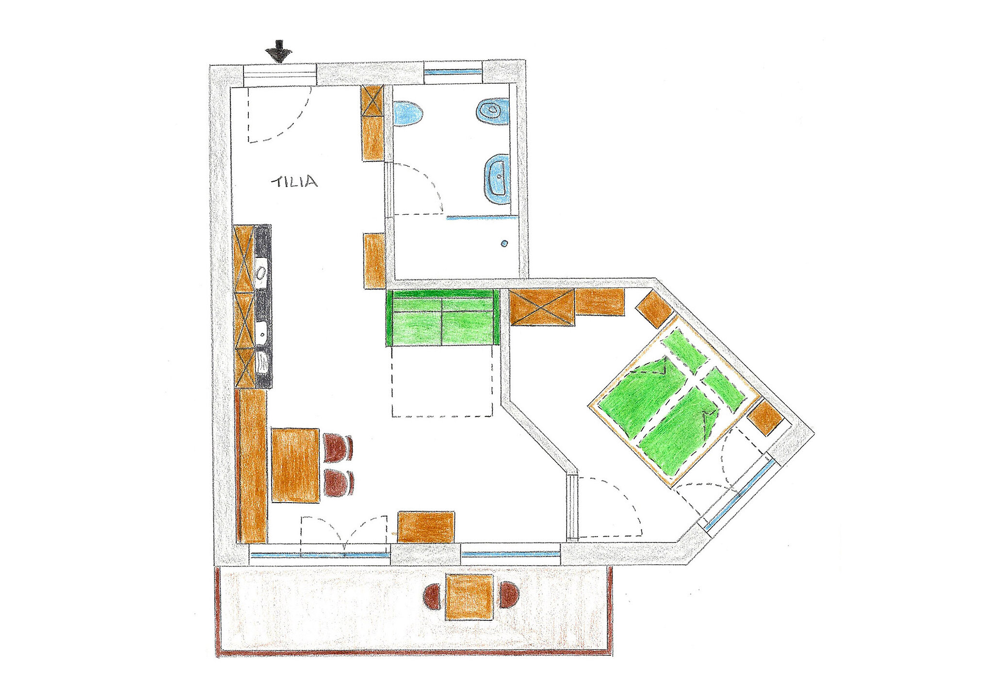 Sie benötigen mehr Platz? ⇒ Kombi-Apartment "TiliaPLUS" (75 m2). Das Apartment ''Tilia' kann mit dem Zimmer 'Vitis' kombiniert werden.