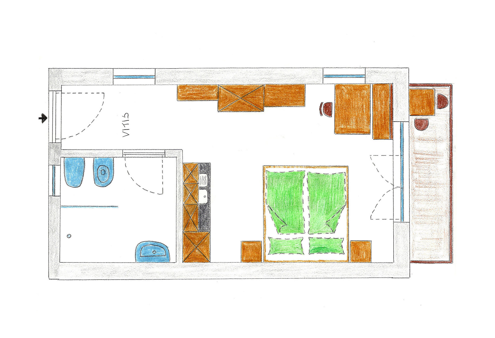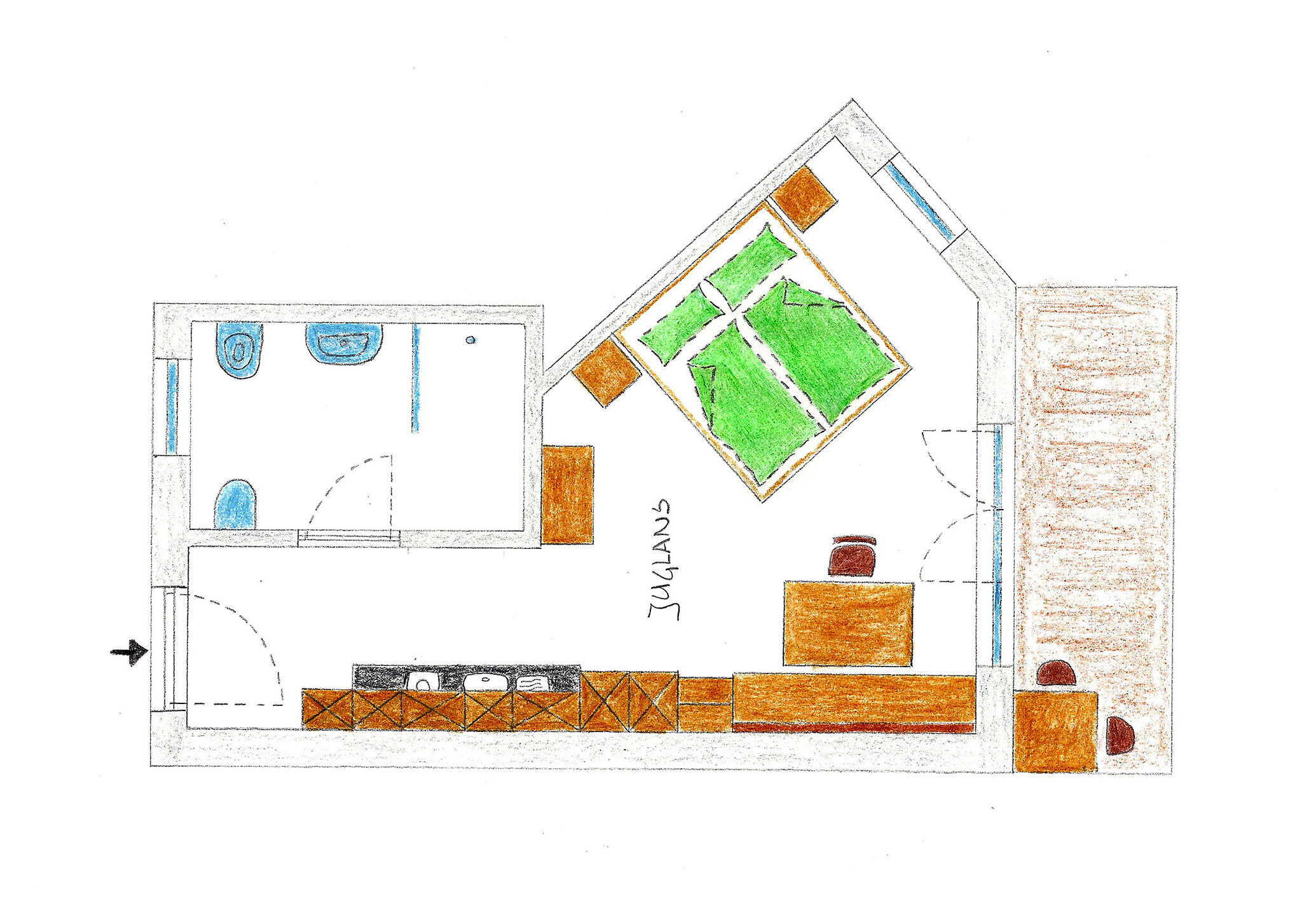 Sie benötigen mehr Platz? ⇒ Kombi-Apartment "JuglansPLUS" (58 m2). Das Apartment 'Juglans' kann mit dem Zimmer “Vitis” kombiniert werden.